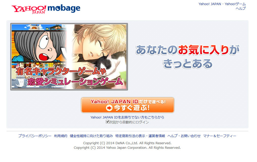 Yahoo!mobageのページに飛んでしまう…。